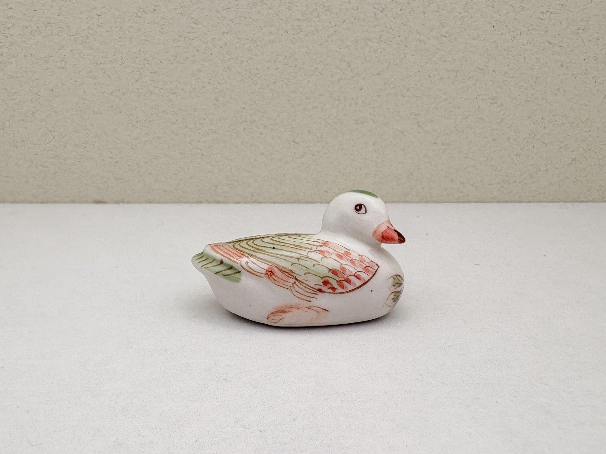 These mini ceramic duck figurines bring charm and tranquility to any space, perfect for collectors and home decorators seeking whimsical animal decor. Each hand-painted ceramic duck features unique duck poses that add character and calm wherever they rest. Crafted with care, these miniature ceramic ducks measure between 1.8–2.04 cm wide, 3.6–4.4 cm long, and 1.72–3.5 cm high, making them ideal compact tabletop ducks for shelf display decor or rustic home accents.